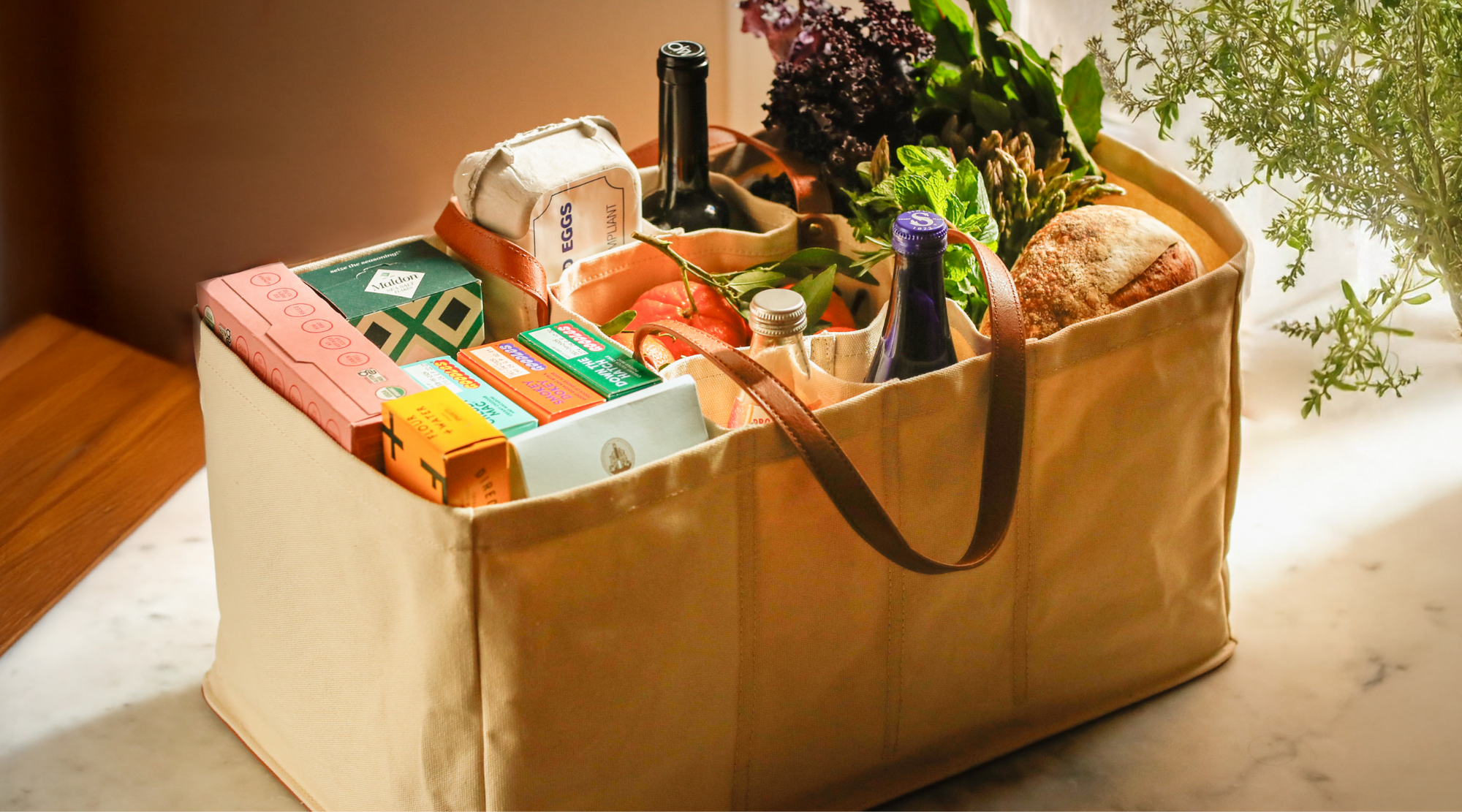 Divide your bounty into separate compartments and keep eggs, glass bottles and your most fragile food intact. The sturdy, structured construction and vegan leather base allows the bag to stand on its own as you wind your way back home.